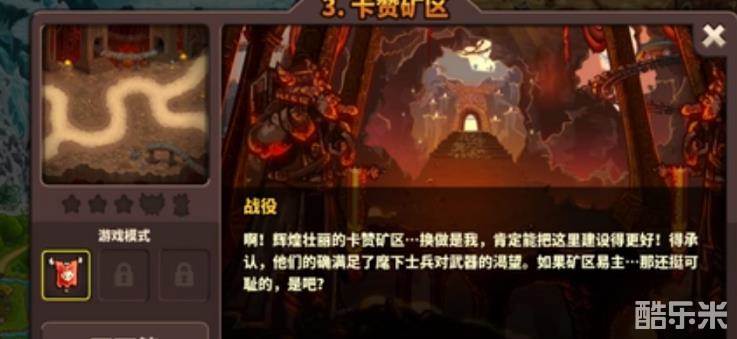 为了帮助玩家们在其上线后更快的适应操作,今天小编就来介绍一下王国保卫战4卡赞矿区怎么过。王国保卫战的每一步都有着不同程度的改动,第四部以维兹南进行复仇为主线拉开了游戏的序幕,期待着玩家在每一次的战斗中打出亮眼的操作,下面是卡赞矿区的打法分析。