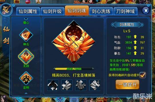 剑魂等级可以通过,吸引剑魂碎片升级,剑魂的等级越高,技能的作用与效果就越高。