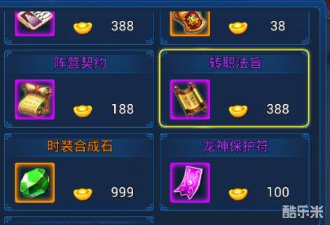 1、游戏需要通过购买主动使用类商城道具【转职法旨】才可进行转职(物品使用等级45);
