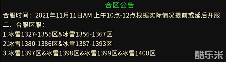 冰雪复古传奇2021年11月11日合区公告