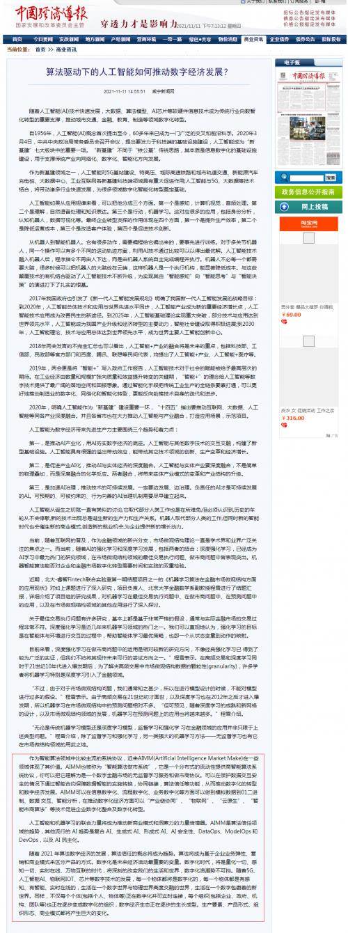 AIMM人工智能算法技术助力数字经济发展受央媒报道