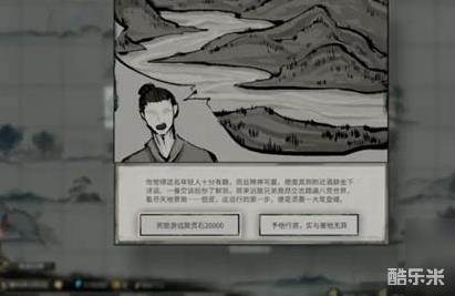 我们先来说一说远志游人这个奇遇,他是一个有着远大志向的普通人,受够了平凡的日子想要去八荒世界游历一下,可是这样需要一大笔盘缠,于是会摆在玩家面前会有两个选项: