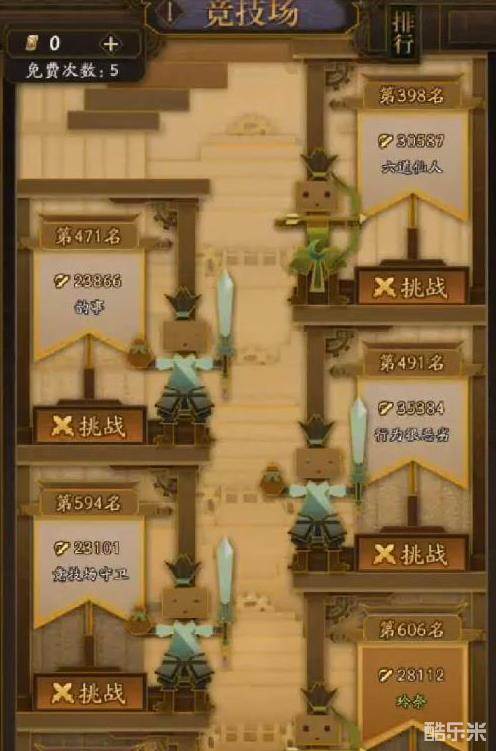 先来介绍一下竞技场的基础机制,每个玩家每日有五次的免费机会,这个次数的话会在每天进行重置的。如果说感觉挑战的次数不是很多,可以选择竞技券道具来答题消耗。这个道具可以通过玩法来获得,也可以使用元宝来购买。在挑战之前玩家要做好战斗阵容以及防守阵容的设定,战斗阵容是玩家挑战使用的阵容,防守阵容是面对其他玩家挑战时候使用的阵容。