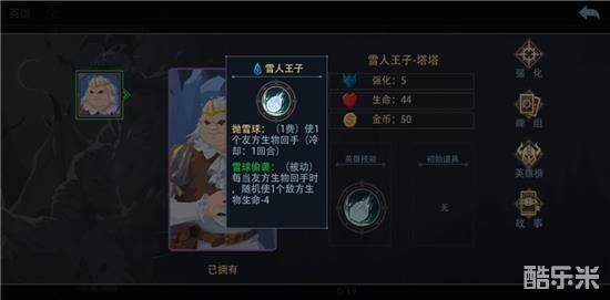 雪人王子 技能 1费回手一个怪 打4血 21级打6血