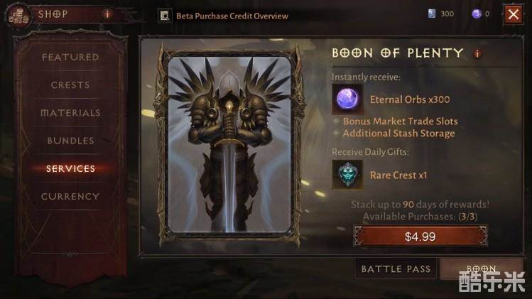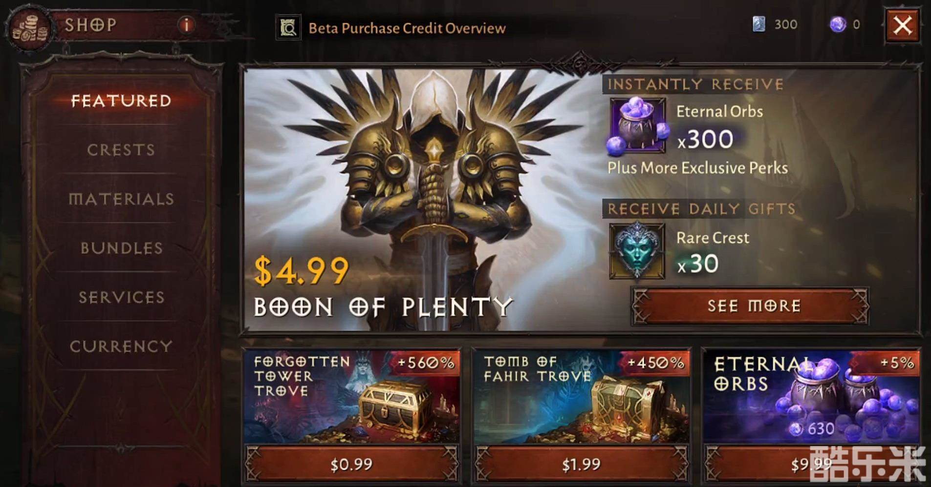 《暗黑破坏神:不朽》海外封闭测试推出了商店功能,玩家可以在其中购买材料,纹章,捆绑包,服务和代币等。需要注意的是,本次测试为删档测试,所有的消费会在游戏上市后返还到对应的战网账户中。