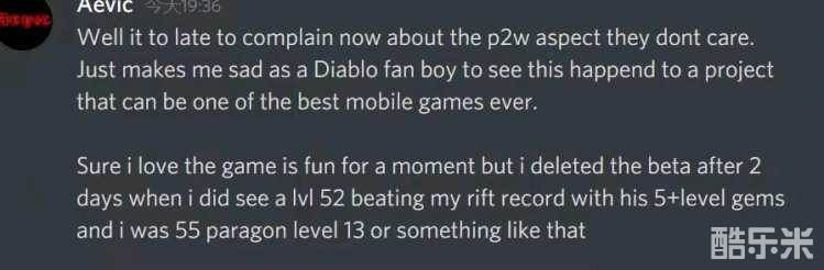 有一位参与《暗黑破坏神:不朽》外服B测的老外心态已崩,他满级巅峰13,在天梯被还没满级全身+5宝石氪佬吊打,他被打崩心态,信仰已经崩塌。据介绍,他在《暗黑破坏神:不朽》B测花了25个小时,一位才53级,只玩了大概10个小时的氪金玩家能在大米比他高整整5层。好家伙,他直接卸载告辞。