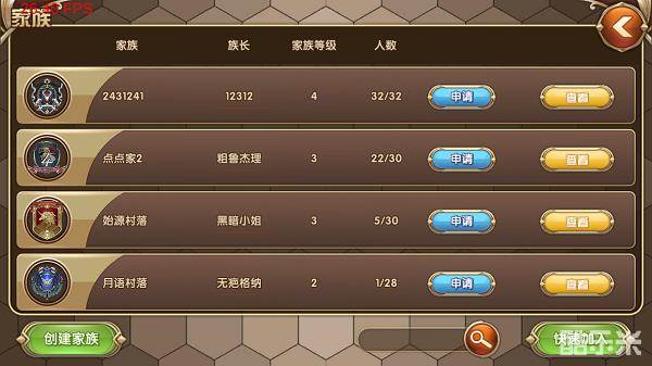 点击家族页面可以看到家族列表
