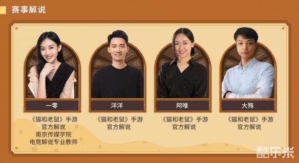 各路英雄,齐聚盛会,顶级解说,燃情助力。四位《猫和老鼠》手游的官方解说倾情加盟,为本次比赛摇旗呐喊。四位分别是曾经的中国传媒大学学霸师姐、现在的南京传媒学院电竞解说专业美女教师“一零”、用脸杀人的英气帅哥“洋洋”以及颜值出众的知性美女“阿唯”以及堪比选手实力的资深解说“大殇”。超豪华阵容带来超一流体验,四位专业解说大神的加入,将为观众带来更专业的赛况解析,为比赛带来更精彩的赛事看点。精彩纷呈,极致体验,尽在网易电竞NeXT2021《猫和老鼠》手游冬季精英邀请赛。