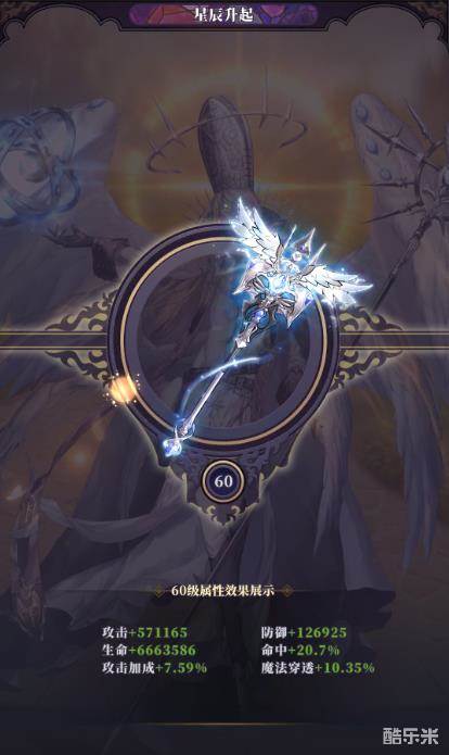 星辰升起,可以通过极地纯石来升级,如下是60顶级特效与属性展示。