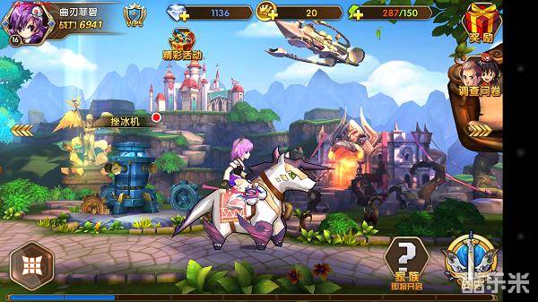 再往右边是最爱的挫冰机、赫尼尔时空漂浮在上方、勇者试炼-像个洞穴般,最右边的大牌子就是排行榜。