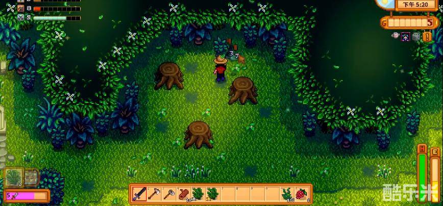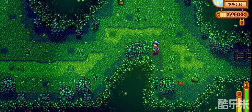 同时,秘密森林的地面上也有着非常多的可采集物,其中包括红蘑菇,鸡油菌,蕨菜等前期完成收集包所必须的农作物。秘密森林中也会固定刷新多个绿色史莱姆,前期会给玩家造成一定的麻烦,不过这也是一个稳定的史莱姆泥的获取方式。