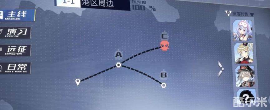 玩家可以点击地图中的A战斗点,就可以在界面下方看到该位置下落的清单,而上方则是我们所要去的目的地,而需要满足的前提条件。与boss的战斗会发生在C战斗点,如果玩家想要解锁下一关的剧情,那么必须去C战斗点打败boss。综合上面分析的情况来看,玩家应该选择的路线是AC。