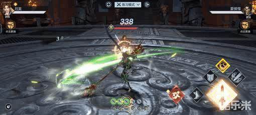月英使用盘花棍进行挥击和扫击,对前方敌人造成一定伤害