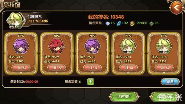 其次,一定要进入新服。还没有被玩家填满竞技场的时候,很多位置都是被NPC占据的哦。NPC非常好打,基本1-2个技能下去就赢了。还有一定几率遇到空位,这时候只要点击占据,就可以提高排名啦,而且不消耗竞技场次数哦。