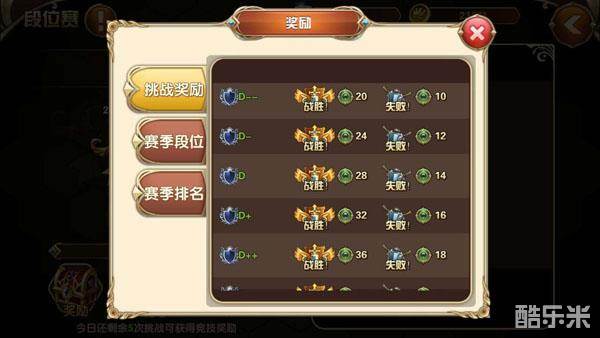 等级达到28级,通关对应主线副本可以开启竞技场段位赛。段位赛是手动战斗,主要考察战力和操作水平。段位越高,每次胜利和失败获得的竞技场徽章就越多。其中,胜利的收益是失败的2倍。