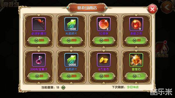 上文一直提到竞技场徽章,徽章是有什么用呢?那就是在兑换商店兑换道具啦。