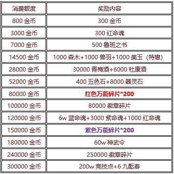活动期间内,累计充值满800金币以上赠送2400蓝命魂