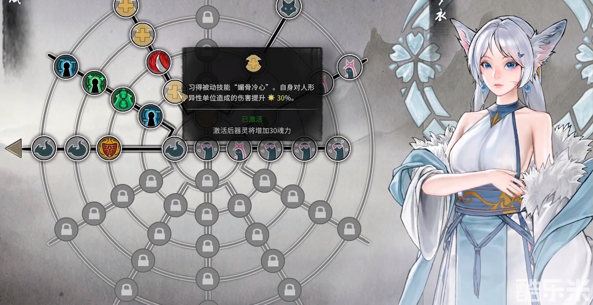 24种器灵中只有6种神级器灵,天赋也只有神级器灵才有;先来看看灵狐族的云梦衣有哪些天赋,首先云梦衣的天赋有增强惑心咒伤害的天赋,这个惑心咒是云梦衣自带的技能,点到最高可以附加100伤害,以及增强惑心咒魅惑时间以及冷却缩减。