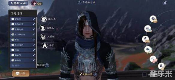 根据以下对话顺序,增加4点好感度的选项分别是:3,2,1,3,3,1,3,2,1,X(最后一题10级好感度随便选了)。