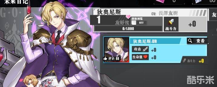 而想要提升友好度玩家需要收集一些狄奥尼斯喜欢的物品,比如巧克力项链什么的,在这个游戏当中很多角色都有他们喜欢的物品,收集这些物品,有利于提升这些伙伴对玩家的好感度,客观来讲,狄奥尼斯既有输出能力,造型又非常优雅的一个角色,非常值得玩家拥有。