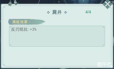 这四个穴位都是大穴位,点满后一共可获得6%的破刃抵抗和6%的反刃抵抗。