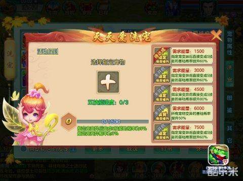 “天天爱洗宠”活动将于11月11日9点到11月17日24点限时开放!少侠还在为洗宠发愁么?少侠还在为变异五技能宠物羡慕不已么?在活动期间,所有洗炼宠物消耗的还童丹、魔化还童丹、变异还童丹都会作为能量积累,能量越多,将开启对应更高的洗宠等级,洗出好宠物的概率也就更高!少侠还在等什么,这次一定让你爱上洗宠!