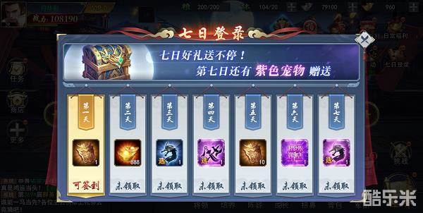 新玩家进入游戏,只要每天登陆就可以获得丰富奖励,如:招募令,元宝,宠物等。