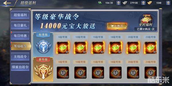 免费的战令可以获得相当可观的元宝,豪华版的更多,可以根据自身的需求进行选择。