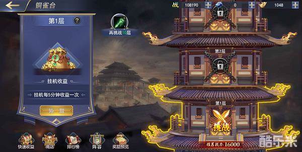 位于铜雀台副本中,是根据副本的通关关卡产生收益。层数越高,收益就越多,睡一觉起床就能够见到满满的资源,谁能不爱呢。