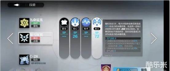 给目标(携带者会被视为处于冻结状态,我方友军如果添加冻结给目标会造成1次添加者50%攻击力的冰霜伤害),升到三级时使目标受到的冰霜伤害+50%
