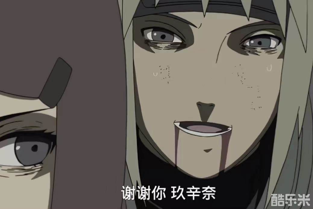 所以水门这个决定不仅是为了玖辛奈,也是为了鸣人,为自己的儿子而死,这也是身为父亲他所能做的事。水门在和玖辛奈说完他的想法后,便发动了尸鬼封禁,把九尾一半的力量封印到了自己的体内,封印完后这九尾直接瘦了一圈,此时,三代也带着几个木叶忍者赶了过来,但是为了防止九尾跑掉,周围已经被玖辛奈设置下了结界,现在他们也进不去,随后水门便召唤出了一个封印台,把鸣人给放了上去,九尾看到后自然是知道了水门的想法,随即抬手就向鸣人抓了下去,伴随着一阵鲜血的溅起,玖辛奈和水门一起为鸣人,挡下了九尾的攻击,此时的玖辛奈已经明白了水门的良苦用心,他们夫妻两个吵架还是她第一次输。