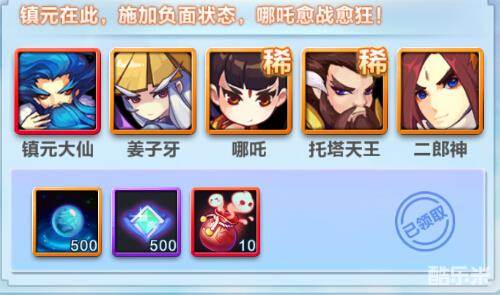 稀有(1级)奖励为高级锻造石*100,突破丹*200与法宝精炼石*300;红卡(50级)阵容奖励为飞升丹*500,神玉*500与红色魂魄袋*10