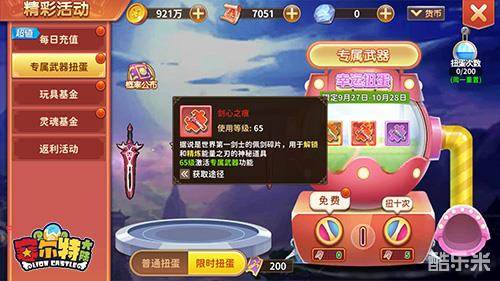 凝聚光能力量,解锁全新武器造型。在《赛尔特大陆》的广袤大地上,埋藏着无数上古时代遗留的宝藏。它们各自沉睡遗迹之中,只有勇敢与智慧的冒险家才能窥视其中真相。而今,随着以太能量的第六次冲击,第六把专属武器横空出世。伴随着各种流言在王国疯狂传播,只有幸运儿才能合成出第六把专属武器,冒险家们对此议论纷纷。目前,诸位冒险家可以通过游戏界面右上角功能【精彩活动】进入【专属武器扭蛋】的【限时扭蛋】,获取第六把专属武器的碎片信息!