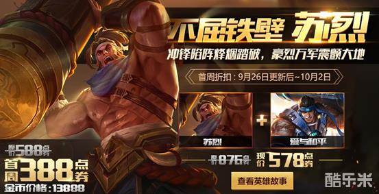 苏烈(英雄)+爱与和平(皮肤):578点券(原价876点券)