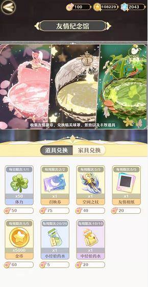 3、友情纪念馆有各种不同的道具以及家具,玩家可以使用友情点兑换;
