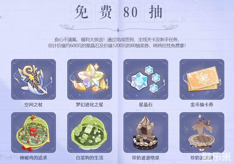 总计价值约600元的星晶石及价值1200元的80抽奖券,统统任性免费拿!