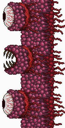 血肉墙 是困难模式之前的最终、最强Boss,只能在地狱中生成。一旦它被打败,世界会永久性地转变为困难模式。这会给玩家带来新挑战并让他们有更多内容可以探索。