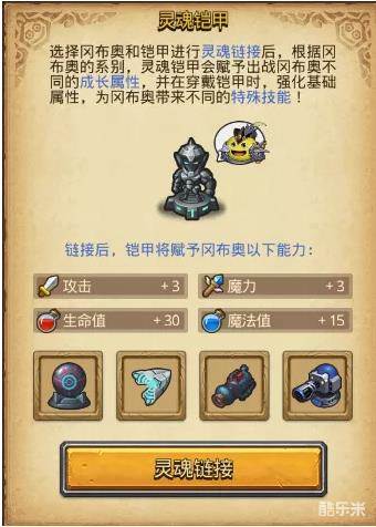 灵魂铠甲类似机甲,通过杀怪和道具升级属性同时还允许你额外灵魂链接一个同阵营冈布奥是本迷宫最特色的系统注:额外灵魂链接无法获得入场道具