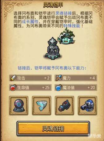 可以灵魂链接同阵营的第三个冈布奥,获得该冈布奥的称号和技能(简单说就是4个球一起刷图),并通过升级赋予额外的属性和特殊技能。