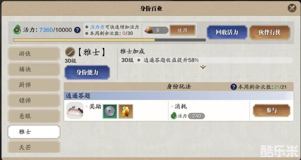 其中逍遥答题给的碎银数量是最多的,如果非常紧缺的话,可以行侠完成逍遥答题。
