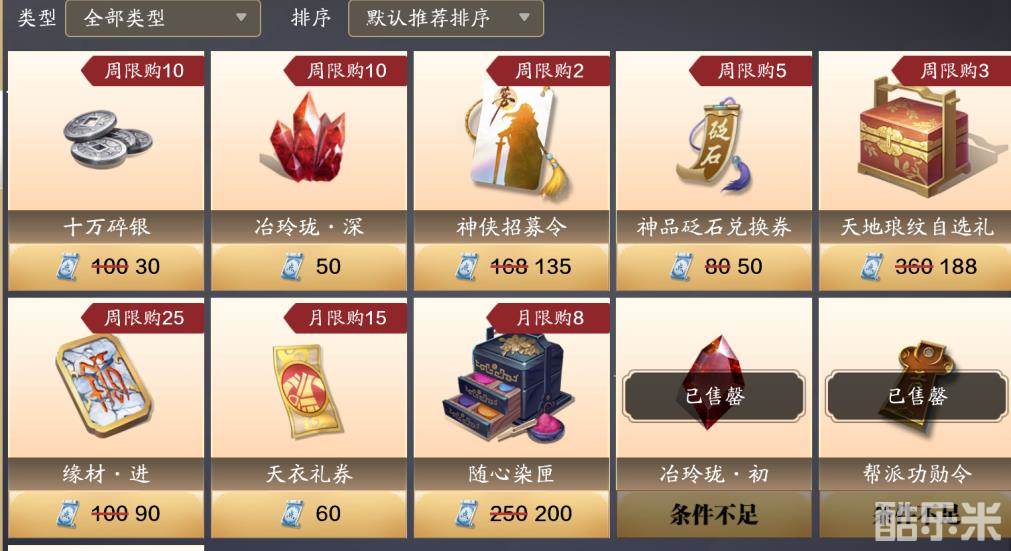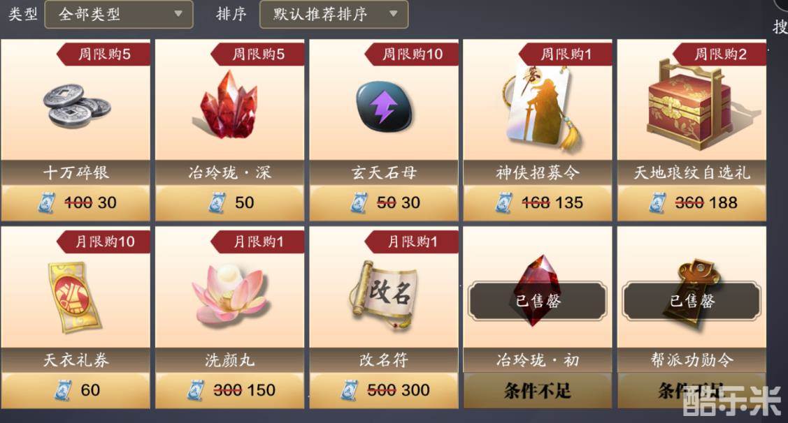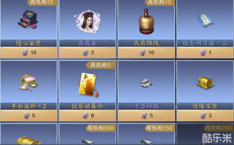 灵琳阁每次几乎都能刷新出来碎银,只是有的可以用绑定买,有的只能用金券买。金券暂时不建议购买,绑点的还是比较香的。
