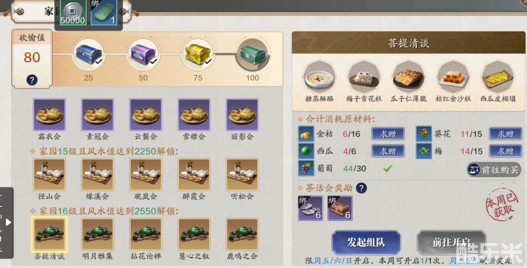 当前开启的茶话会基本上都是金色的,可以获得60W碎银。再加上欢愉值的5W,保底可以获得65W碎银。