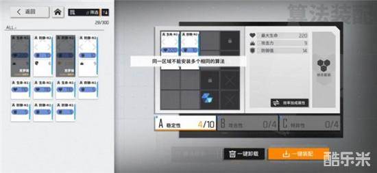 算法根据效果强弱大小也不一样,并且相同大小和效果的算法只能插一个,比如我可以放一个面积为1和一个面积为2的生命算法,但是不能放两个面积为2的生命算法。