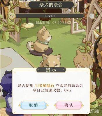 柴犬是游戏中我们第二个获得精灵,也是第一个开始茶话会的精灵,他和他的专属家具都是可爱舒适属性的。进入茶话会点击参加茶话会可看到茶会奖励,有经验、满意度、金币,根据茶话会的时长奖励数量有所不同。选择合适的精灵参加,会有奖励加成哦。