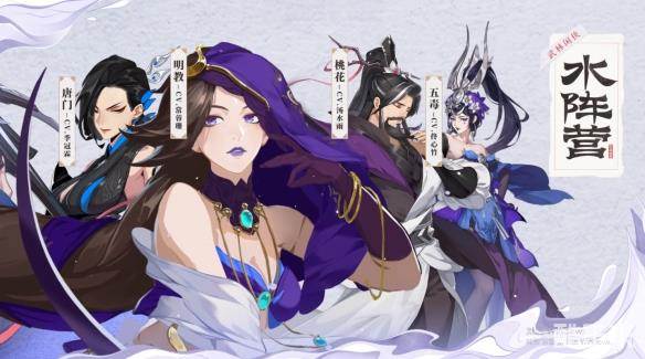 在武林闲侠中水系侠客有10位,古墓、五毒、明教、嵩山、崆峒、万花、海沙、唐门、金刚、合欢。