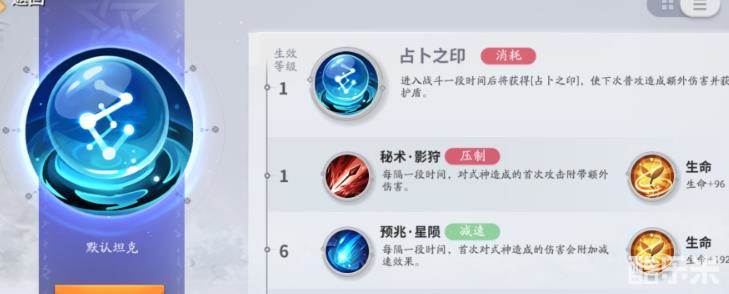 占卜之印,这个阴阳术在当前版本的对钱强度过于高了,如果小伙伴们在对线的时候不选择带这个阴阳术,那么自己的对线就会很容易被压,导致上路不带占卜之印整体对线会处于较大的劣势,而中后期,占卜之印整体触发频率过低。