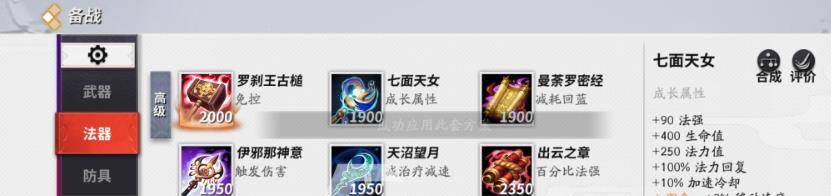 首先第一件装备我们就出七面天女,这件装备可以说是很合适上单花卷鸟出的,可以增加自己的血量的同时,也可以提高蓝量的回复和法力值,出了这个装备后花卷鸟点人的伤害就很高了,而且不害怕在线上没有蓝量,因为这件装备可以不断为我们回复蓝量,同时这件装备还是一件成长型的装备,可以在我们击杀敌人或者是获得助攻后可以增加血量和法强。