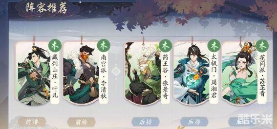 藏剑山庄·叶凡+南宫派·李清秋+药王谷·张景奇+太极门·周湘君+花间派·苏芷青。
