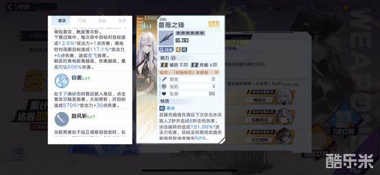 【蔷薇之锋】定位是防御系武器,武器特质为寒冰,让其在攻击中附带冰冻效果,另外冰冻破碎时会造成高额伤害。武器增加的属性为攻击、全抗和生命值,能让角色在战斗中承受更高的伤害。作为近战角色,要有一定的生存能力才能打出更高的伤害。蔷薇之锋增加的防御属性和一定的控制能力,让其在战斗中更加游刃有余。