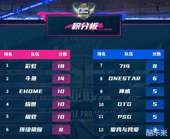 《街头篮球》FSPL职业联赛上半程收官 彩虹领跑
